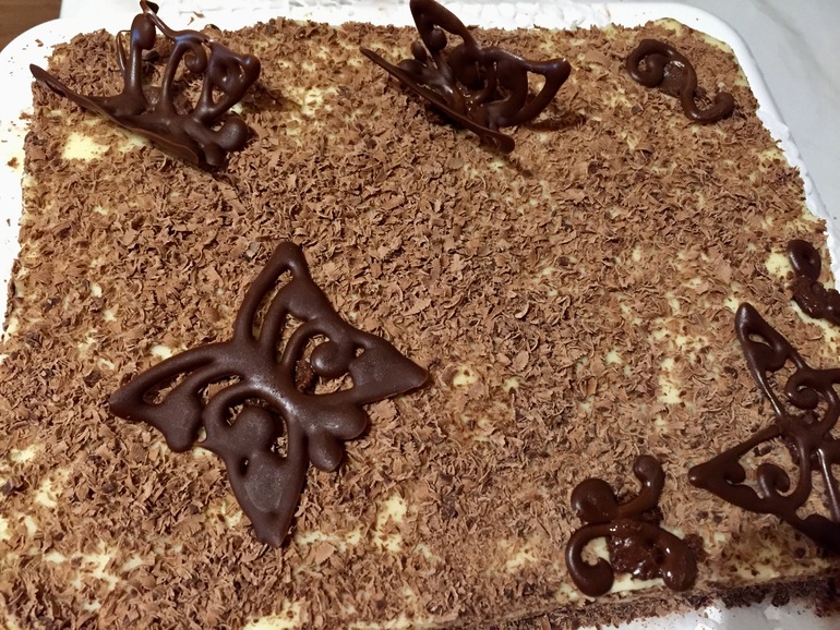 Вчера был день рождения у свекрови и я приготовила для нее Медовик. Я планировала залить медовик белым ганашем, и сверху черным шоколадом сделать надпись. Но все пошло не так😂 Ганаш я приготовила с вечера,оставила ее в закрытой миске при комнатной температуре, утром начала украшать торт, но шоколад никак не ложился ровно, пришлось все это безобразие спасать шоколадной крошкой.Теперь торт стал совсем скучным и я решила украсить его фигурками из шоколада.Вроде все так здорово начиналось,бабочки получились милыми, но только я достала их из холодильника они мгновенно начали таять😩. Еле-еле некоторые перенесла на торт, остальные доела дочка.