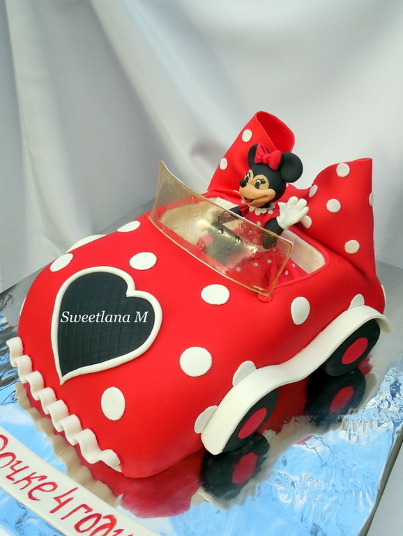 Торты детскиеВот такая машинка для Минни Маус вышла.Внутри песочные коржи,сметано-масляный крем,фрукты.