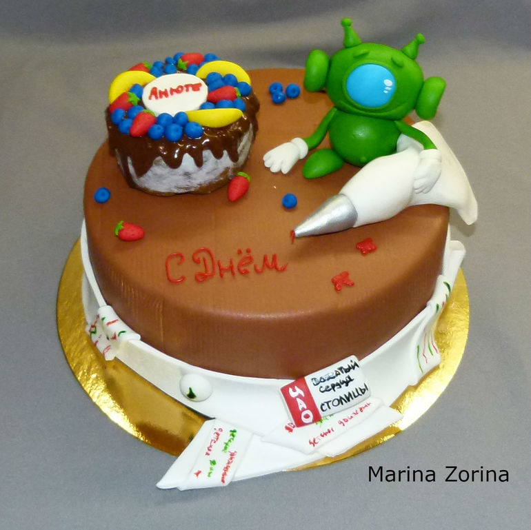 для непосвященных торт будет совсем не понятен. А на самом деле - торт для девушки , которая несколько лет работает вожатой, увлекается тортиками и работает в айтое ( умные игрушки)
