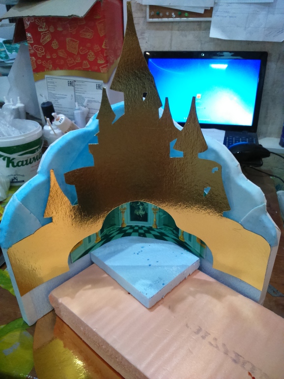 Бардак жуткий,простите,но это рабочая комната)Стенка из полистирола,замок из подложки,закреплен скотчем(если кому пригодится)Внутри-пищевая фотопечать.