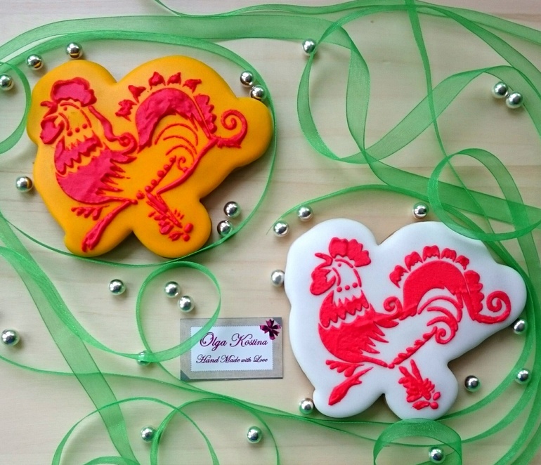 И первые новогодние пряники в виде Петуха -символа 2017 года.
