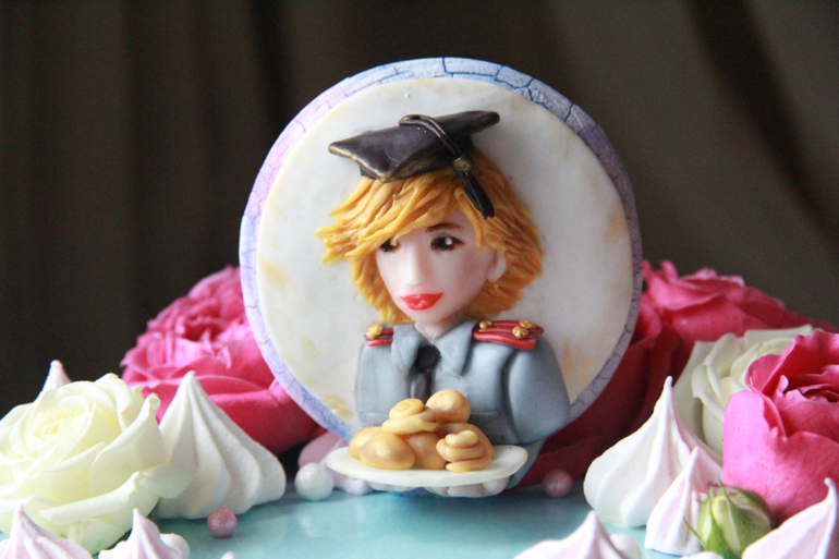 Ну и мой кошмар))) Заказчица моя знакомая, учились с ней параллельных классах, но не общались, в принципе. Ну и звонит она с просьбой сделать тортик для ее мамы. Не проблема. С составом быстро определились, а вот дальше..... Сначала был торт "Мама, ты помнишь?", где должны были быть 5!!!! младенцев,это при том, что у нее только 2 детей! На скромный вопрос: "А кто еще 3?" был ответ: "Внуки и МУЖ!!!!" Мля.... Моя логика билась в конвульсиях))) Я этот дизайн не выношу, стала отговаривать. Тут у нее возникла идея: мама подполковник милиции на пенсии, преподает в ВУЗе и печет пироги и плюшки. А можно на торт погоны, шапочку с кисточкой и плюшки? На муссовый!!!!!! Я сказала, что это будет (тут мат). Тогда появился вариант с мамонтенком. Ну это хоть и банально, но мило) Думаю, ну ладно, голубая глазурь, шоколадные льдинки и мамонтенок. И тут я читаю: "А можно сделать нас пятерых мамонтятами?" Я выпала в осадок.... Ну конечно!!!! А что? Один седой, другой рябой, третий с соской.... Атас! Не выдержав всего этого, я сказала, что не буду делать ей торт!!! И тут она говорит: "Ну ладно, делай как считаешь нужным, это я помечтала" Не дай Бог дожить до таких мечт..... Я согласилась, но в душе я уже очень не хотела его делать, понимая, что у нас ну вообще разные представления о том, как должен выглядеть красивый торт)))) Ну и в итоге появилось вот это "чудо" на прянике))))) В соц.сети выкладывала без него, но вам покажу))))