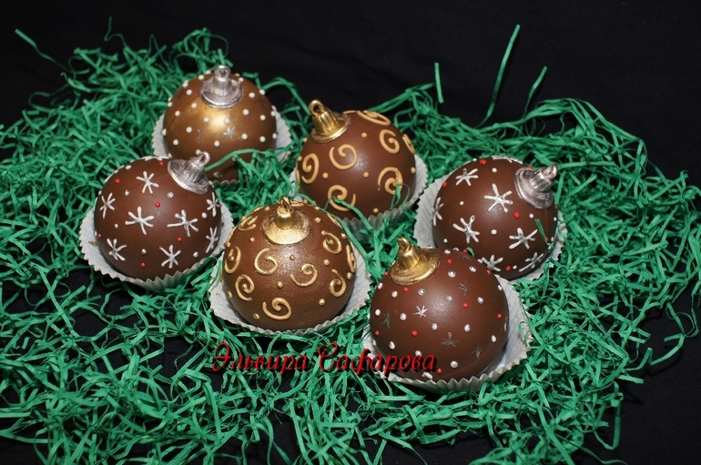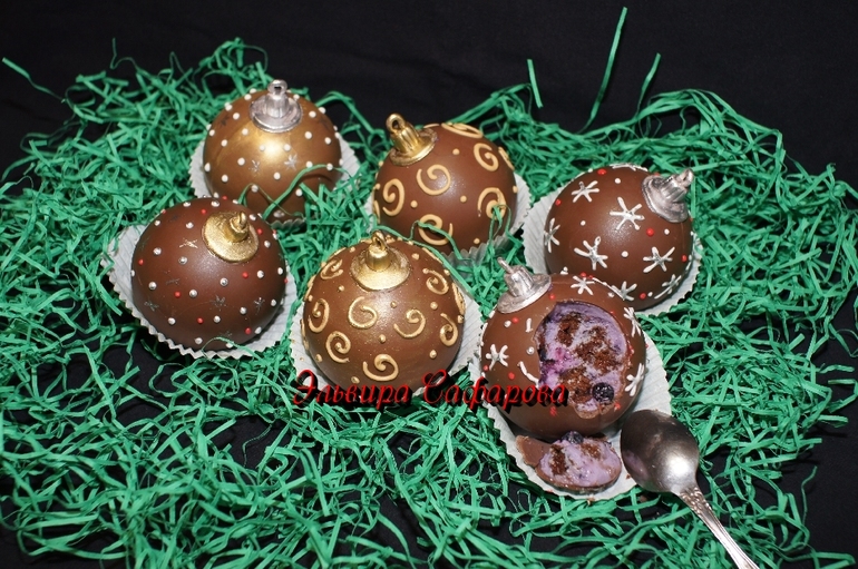 Мне показалось интересное решение Новогоднего десерта. Шоколадные шары, наполненные суфле(черничное, вишневое, апельсиновое) +кусочки бисквита и ягоды.![]()