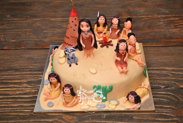 Торты детскиеОчень интересный заказ. Тематика индейцы - главная героиня со своими верными друзьями - для именинницы. Сейчас очень популярны принцессы - малышки, вот это как раз этот вариант, а остальные индейцы для друзей на празднике.