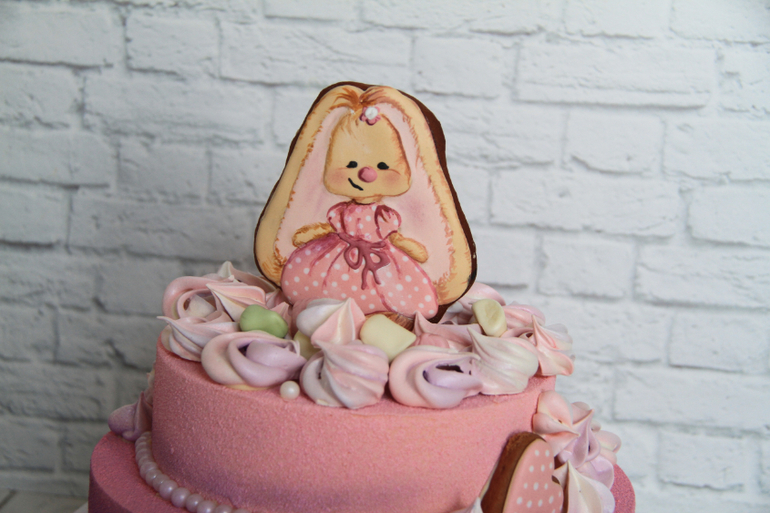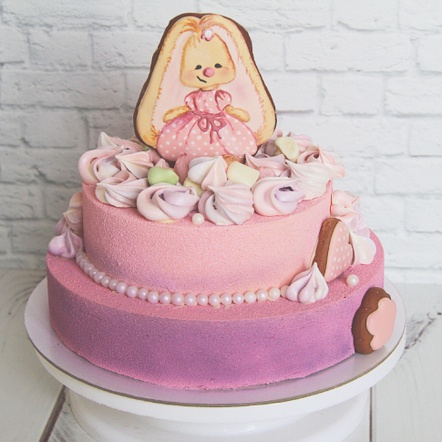 Мне нравится тортик) Очень милый, зайка притягивает взгляд, к безе не присматриваешься, общий вид они дополняют структурой. Зря ты)))