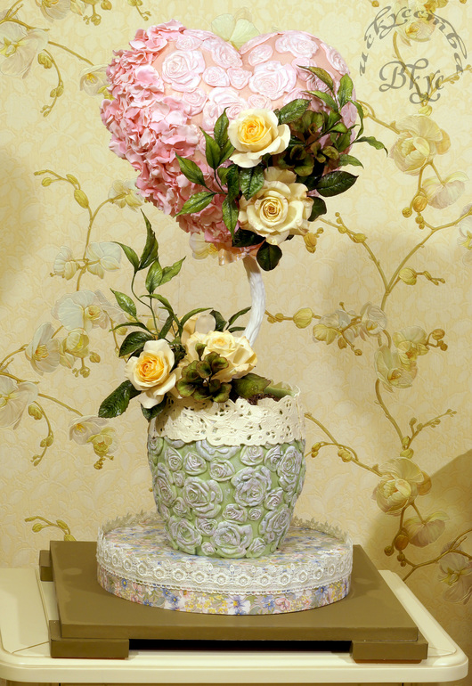 Торты для женщин17 кг. Торт и "горшочек", и сердце. Ванильный бисквит сливочно-сметанный крем, вишня.