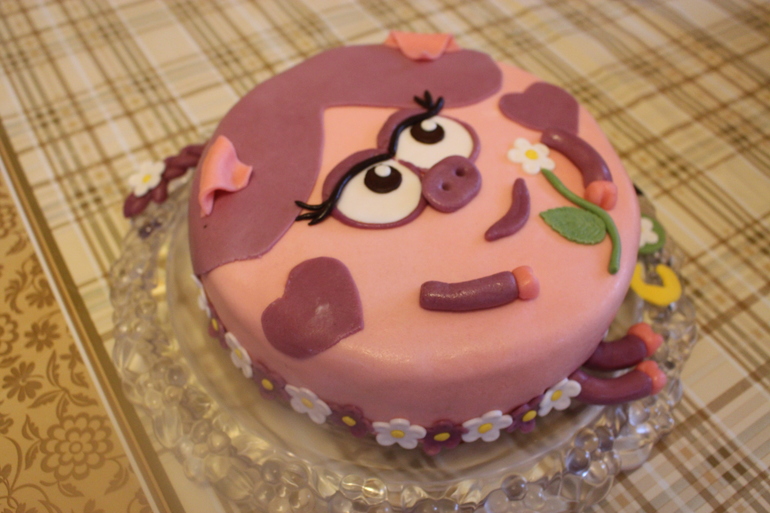если пойдете-не пожалеете! Юлия рассказывает и показывает все очень доходчиво!Я впервые на таких курсах да и с мастикой не работала вообще...Меня захватило!В итоге получился вот такой тортик)))Корявенько конечно,но стоит учесть тот факт,что это первая работа)