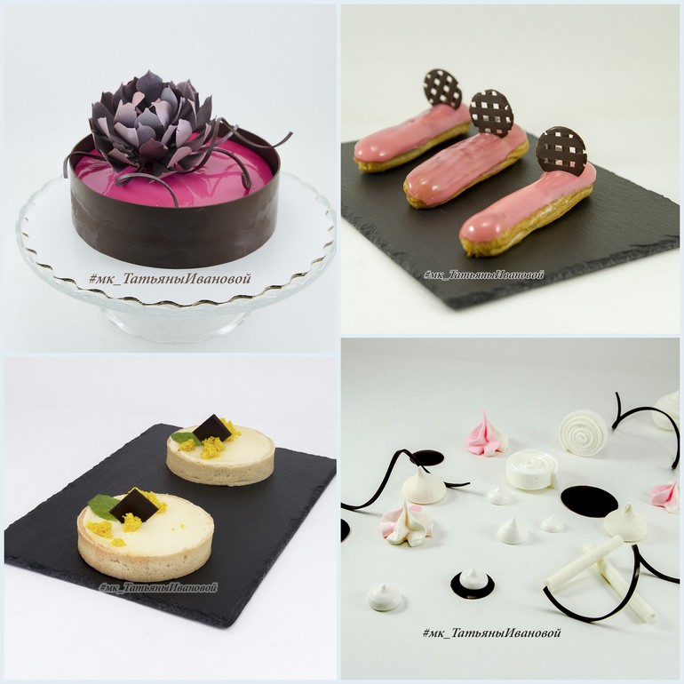 Месяца два назад прошел индивидуальный мастер-класс, где мы приготовили торт, тарталетки, эклеры, макарон, безе, маршмеллоу, зефир. Цветок ученица собирала сама.