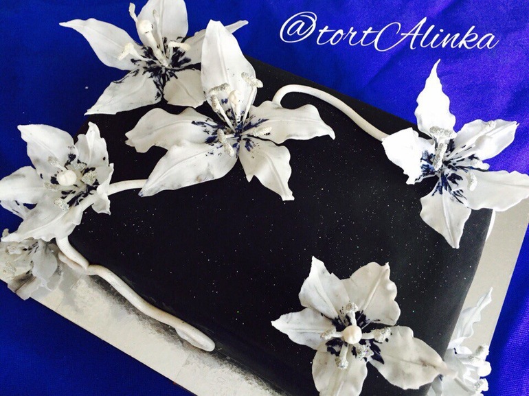 вам самой нравится этот торт? вот честно? у лилии 6 лепестков, если что... извините, но торт не нужно ставить в раздел "Разное", для него есть раздел "Проба пера", потому что работа пока грязная, не аккуратная, не продуманная, дилетантская, сделанная, видимо, вообще впервые. поищите другой МК по лилии, где на выходе получается не фантазийное нечто, а именно лилия.