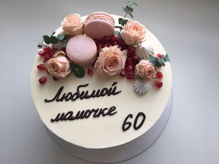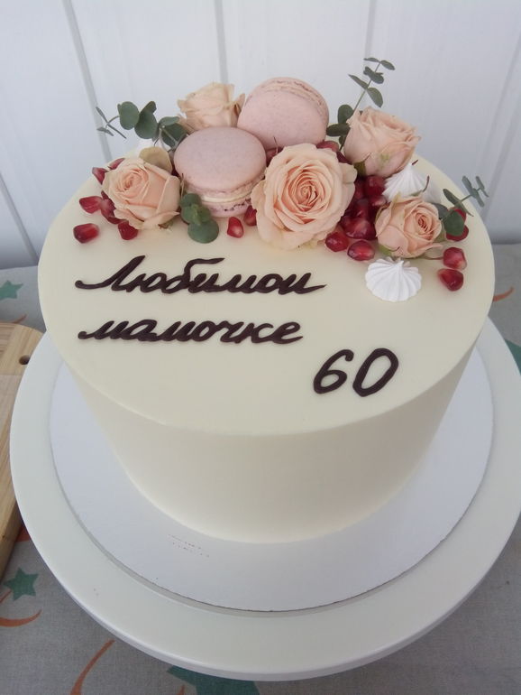 Украшение тортов кремом,шоколадом, фруктамиВанильный бисквит + ванильный баваруа с Бейлизом+ вишня, покрытие крим-чиз+масло