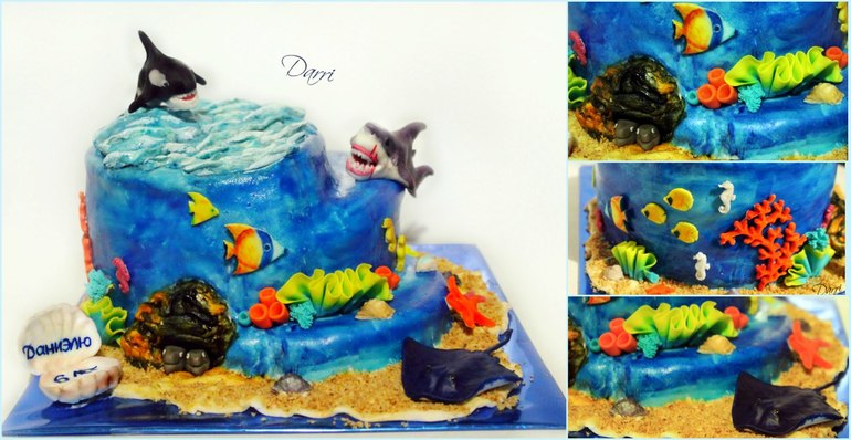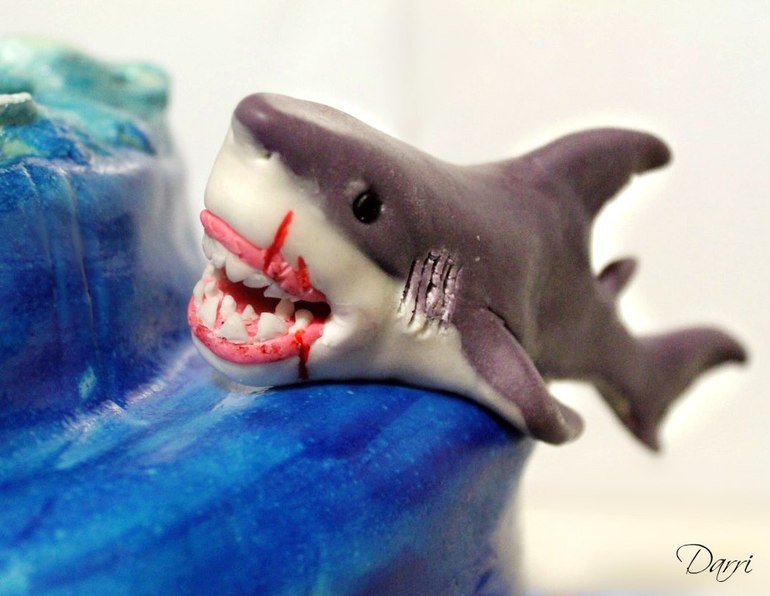 Классный торт, у акулы зубы в 2 ряда не поленились сделать)))))