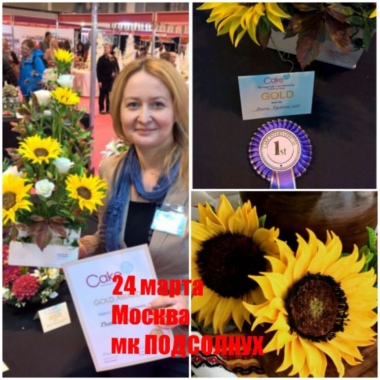 Друзья! Мы открываем запись на мастер-класс Жанны Рябковой в Москве 24 марта по сахарному подсолнуху. Курс практический! Вы можете быть и новичком! Подсолнух - авторская работа, разработка Жанны в английской технике. Работа цветочной мастикой, проволокой, тейп лентой, особенности покраски, сбор цветка, который вы забираете с собой. Жанна - не только профессионал сладкого искусства, но и талантливейший преподаватель, стремящийся, чтобы все ученики выполняли всё от и до самостоятельно, но под её чутким руководством! Жанна более 6 лет работает в кондитерской сфере, прошла обучение у Алана Дана, Карлоса Лискетти, Келвина Чуа и многих других известных мастеров кондитерского искусства. Отмечу, что её мастерство и талант были заслуженно оценены на международной выставке в Англии: 2 золота за сахарные цветы и Первое место Cake international2016!!!