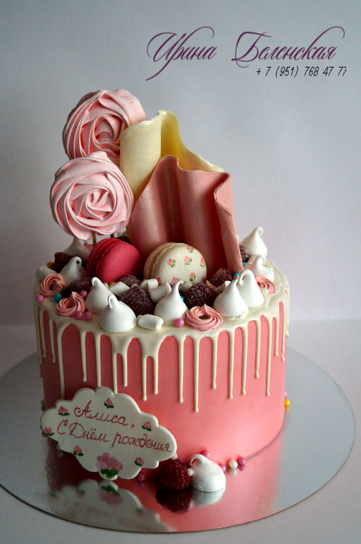2, 7 кг. " Медовик". Покрытие крим-чиз. Декор: шоколад, меренги, малина, маршмеллоу, макаронс.