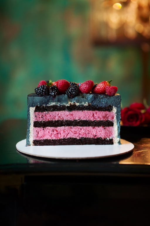 Во-первых, такая была задумка. Во-вторых, я уменьшила количество красителя за счет того, что торт покрыт 2 слоями. Если присмотреться, то видно белый крем без красителя. Ну, а в третьих, кто не хочет,тот не будет заказывать такой торт)