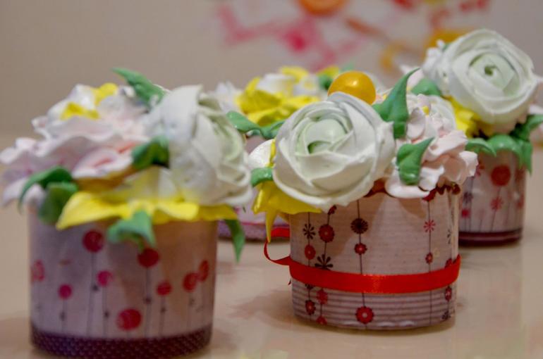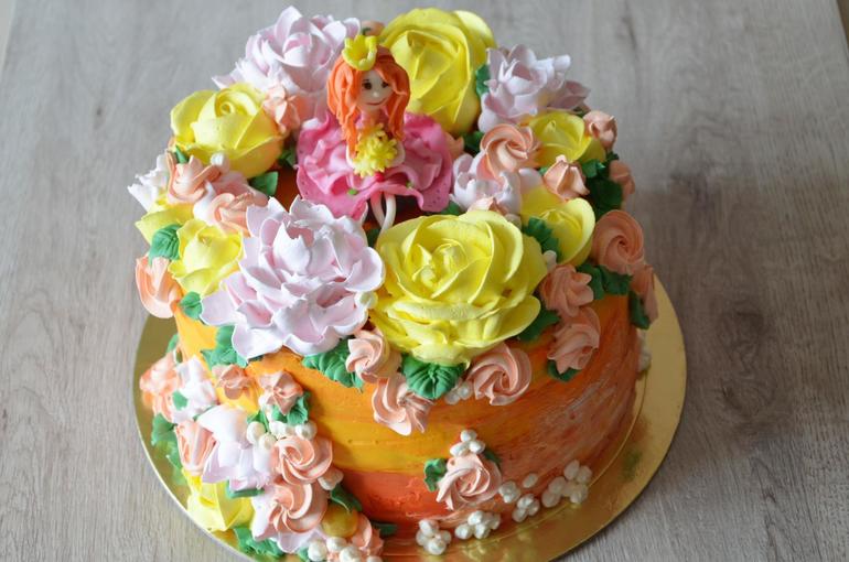 Много ли крема в торте? Нет-потому что в цветах воздушный зефир,покрытый тонкими лепестками. Мокрое безе.
