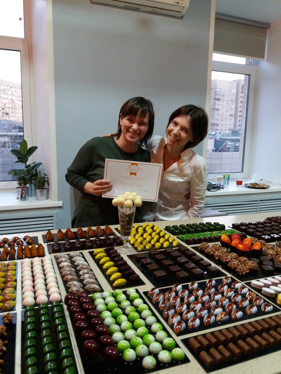 А я 12-13 марта была на МК по конфетам! Вела его замечательная Ольга Фан-Юнг. Она из Израиля. Как же я рада, что попала к ней! Так глубоко не давал пока никто. На второй день, когда писали теорию, у меня было ощущение, что я сижу на паре в институте и пишу лекцию по химии))) Очень круто!