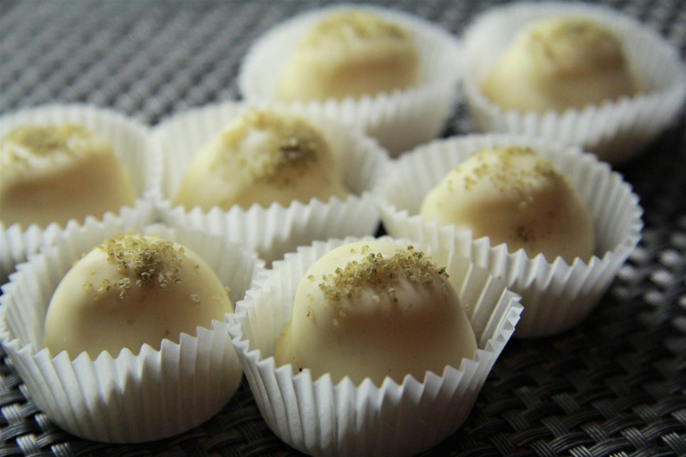 Трюфели с имбирем и маракуйей в белом шоколаде.