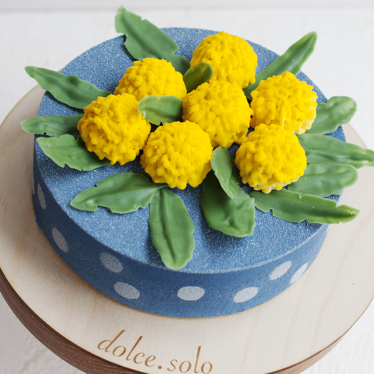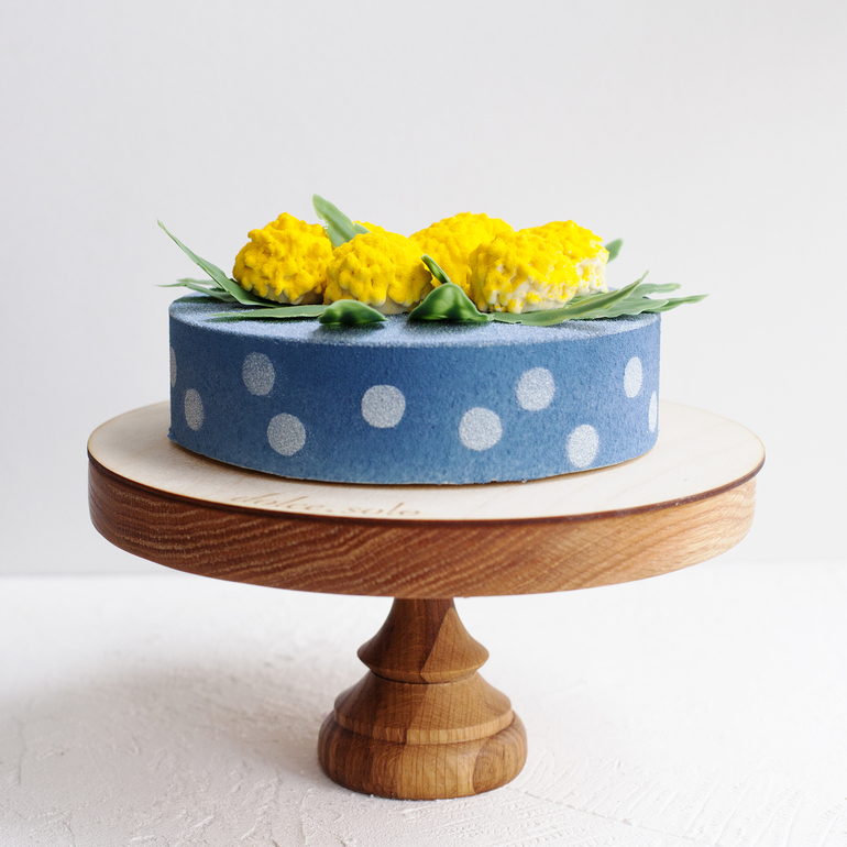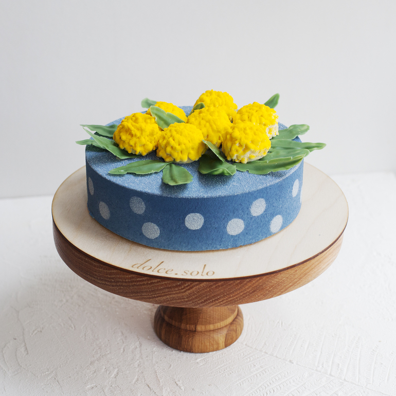 У меня еще один торт по чудесному детскому рисунку, "Голубая чашка". Листики шоколадные, остальное - мусс под велюром.