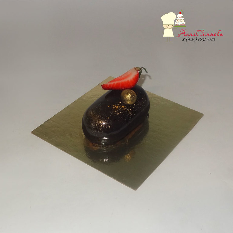 Внутри шоколадный бисквит, малиновое конфи, мусс на зеленом чае улун с жасмином.