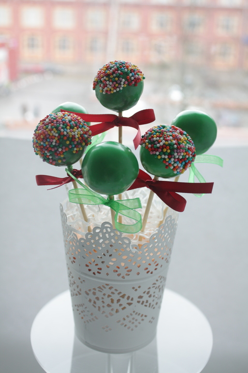 Последний раз делала на др своей дочки золотые - красила кандурином. Сегодня попробовала покрасить белую глазурь (в каплях) обычной краской америколор. Чуть разбавила молоком. Но глазурь осталась мягкой, хоть и не стекала с кейкпопса. В результате сам кейкпопс держался не очень прочно на палочке.