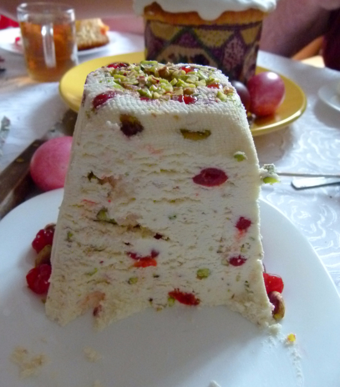 решила собрать в один пост то , чем занималась на прошлой неделе . пекла три вида куличей . по советскому сборнику , творожный и по дореволюционному рецепту . делала творожные пасхи, в основном с вяленой вишней и фисташками. а в маленьких стаканчиках правильной формы (хотя кверху тортамашками :) ) с дыней и манго. опробовала безбелковую глазурь - не считая помадки и белковой, есть плюсы - есть минусы. печенье в виде яичек с начинками и безе гнезда успела показать раньше . в общем неделька выдалась еще та