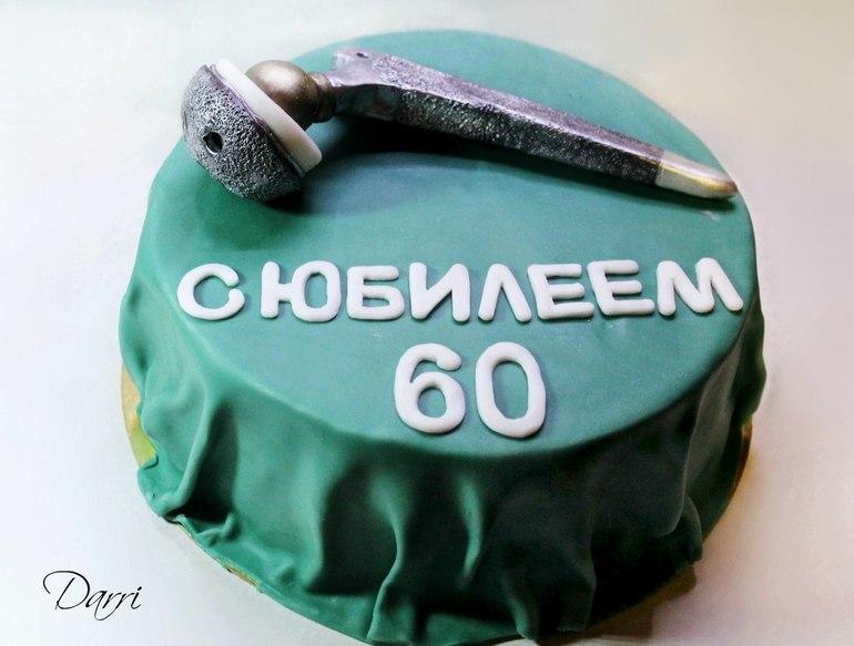 Очень приятно было работать с таким тортом, это необычный заказ с необычной темой торта) с чем только не приходится сталкиваться кондитерам, нам лично на руки дали эндопротез, так сказать, чтоб можно было лепить с натуры