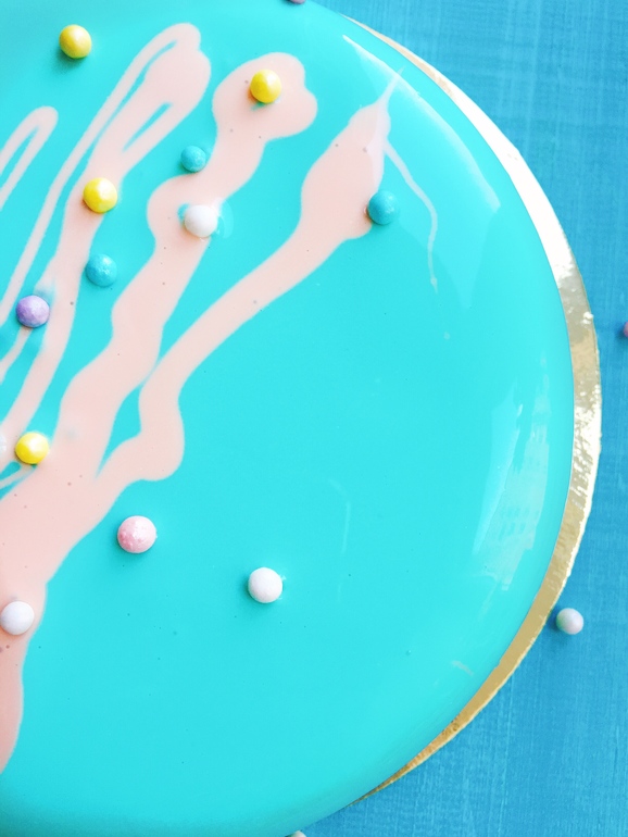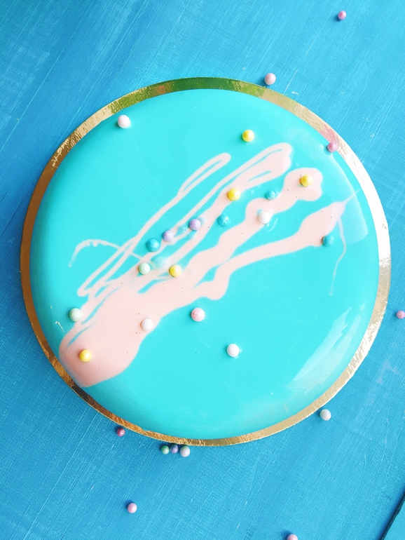 Я не профи, могу только свои субъективные ощущения описать. Зеркалка на шоколаде довольно плотная, и тут уже все зависит от цветосочетания глазури и мусса, а еще от температуры глазури при заливке. Три шоколада если поливать слишком теплой глазурью - никакой диоксид не поможет, стечет глазурь и видны будут полосы муссов сбоку.