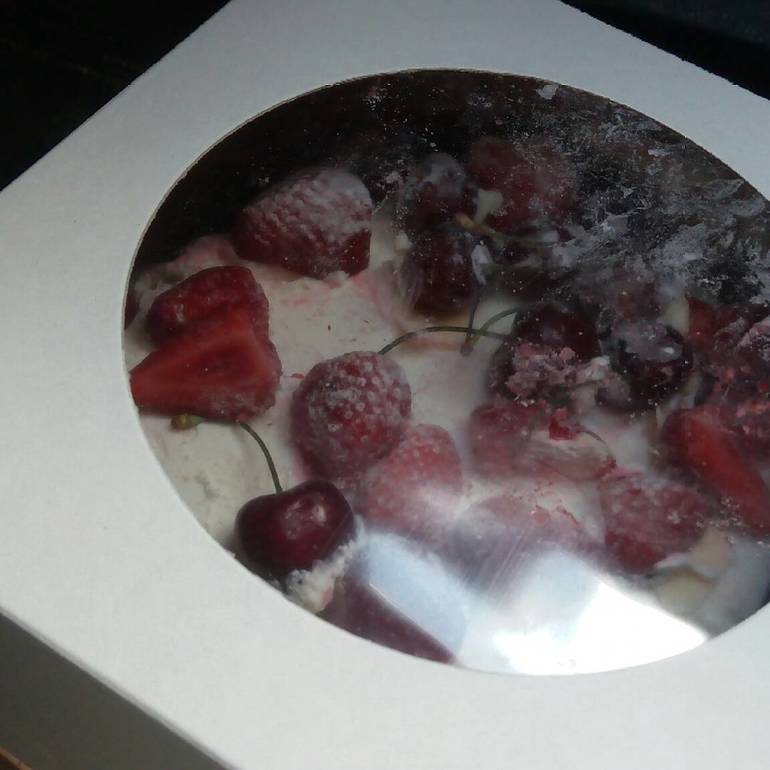 Но с тортом произошёл инцидент. Даже два. Во-первых, Степа снес его вниз головой. Хорошо хоть в коробке и замороженным)))