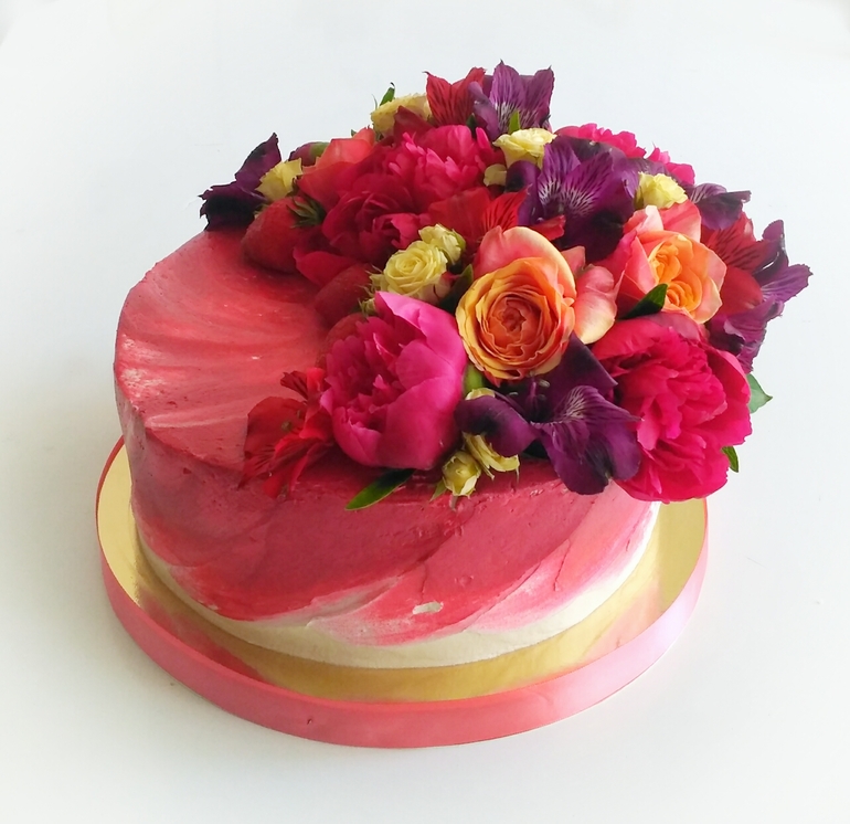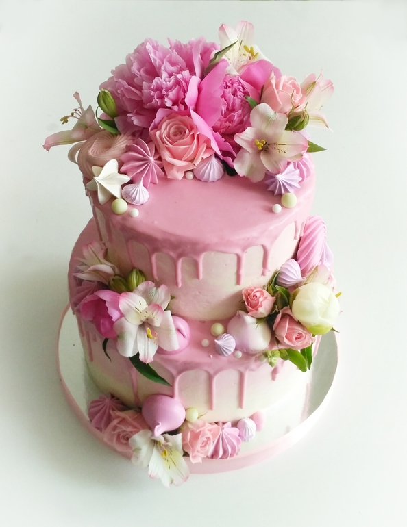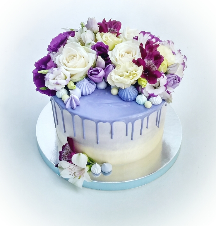 Очень мне нравятся ваши торты. А цветы настоящие в торт воткнуты?