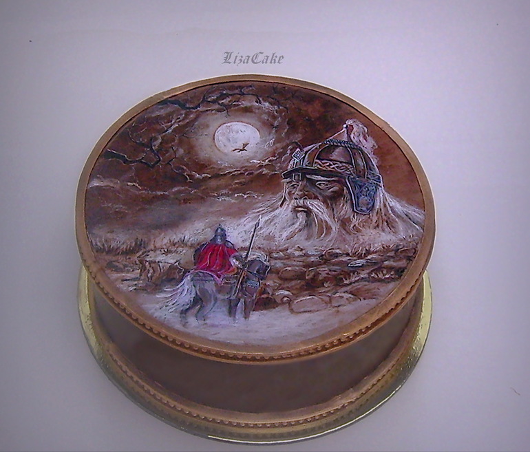 Торт делался по иллюстрации художника Ожиганова И. По его иллюстрации я уже делала торт "Сварог".. будь моя воля - сделала бы и ещё пяток тортов по его картинкам.. Не по всем.. нет.. Не все мне нравятся, не со всеми видениями образов художником я согласна, но пяток ТОПовых наберется.. я бы по ним поработала