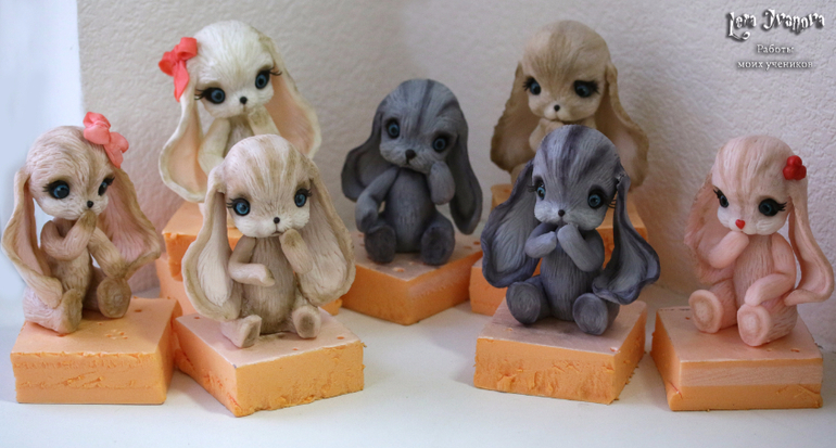 Это однодневный курс "МиМиМишка". Настя, Юля и Юля, Ксюша, Нелли, Катя и Катя, Динара - спасибо вам, девчат! Какие у вас хорошенькие зайки вышли! Все разные и такие милые! Умнички! Рада была знакомству со всеми вами!
