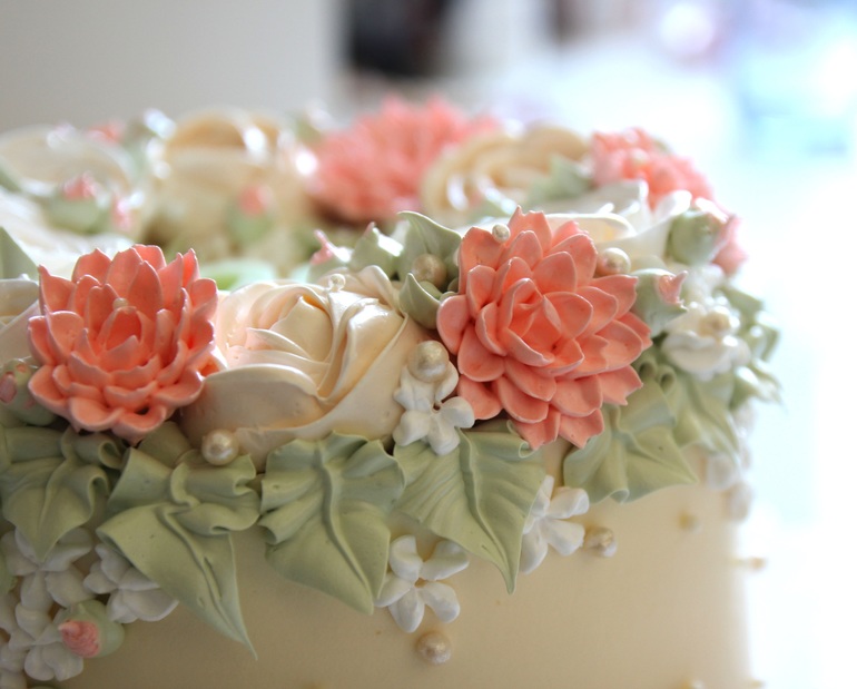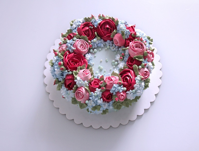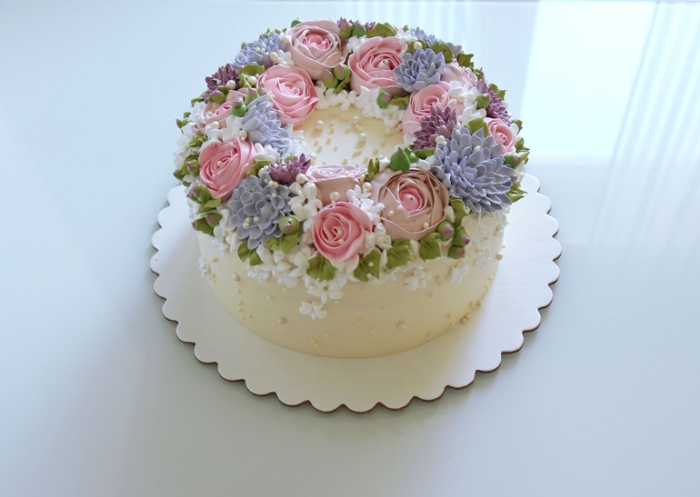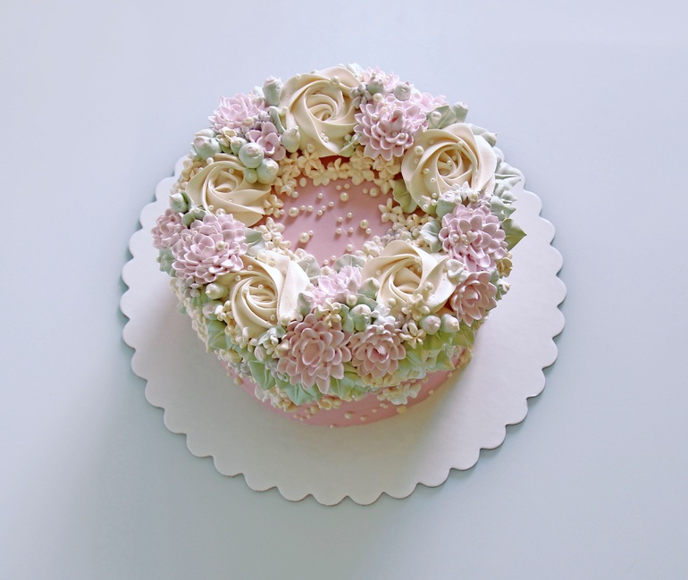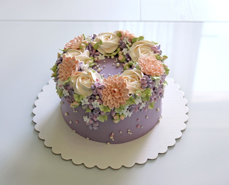 Ваши торты просто прелесть!!! Скажите, пожалуйста, каким кремом покрывали торт и из чего сделаны цветы?