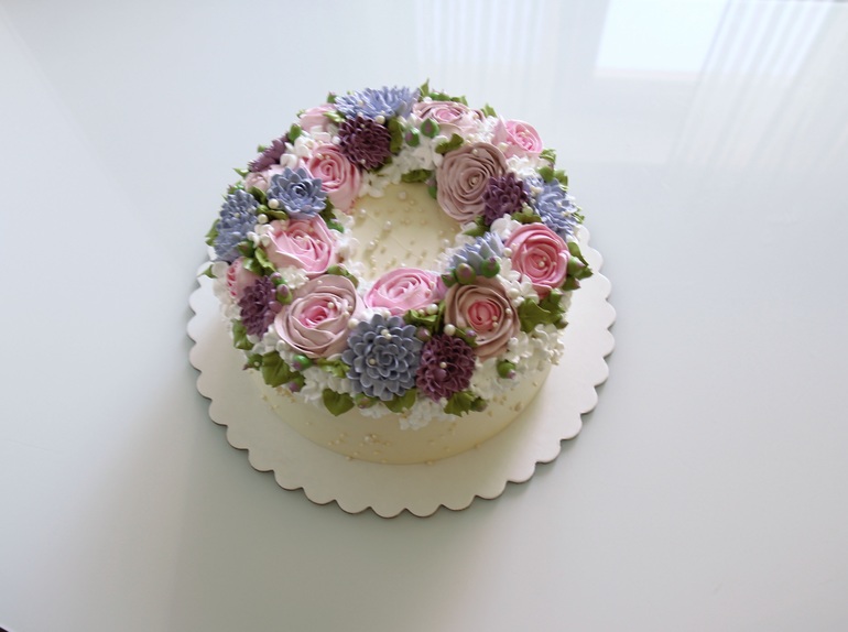 Спасибо, можно еще вопрос: вы цветы делаете отдельно, а потом укладываете на торт и потом уже добавляете мелкий декор или сразу все на торте? очень аккуратно получается, прям идеально!