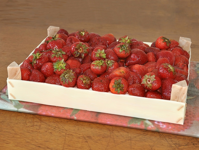 да,с одной стороны торт простой,с другой идея хорошая...ну и кууулубника..подозреваю,что возможно торт делался летом,когда была клубника не по той цене,что сейчас...