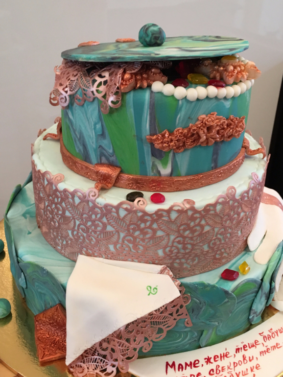 Торты для женщинРедко удается делать торты для своих, но этот праздник пропустить я не могла..Тортик для мамули, вес 12 кг, внутри мусс из розового шампанского, клубничное конфи,клубника.