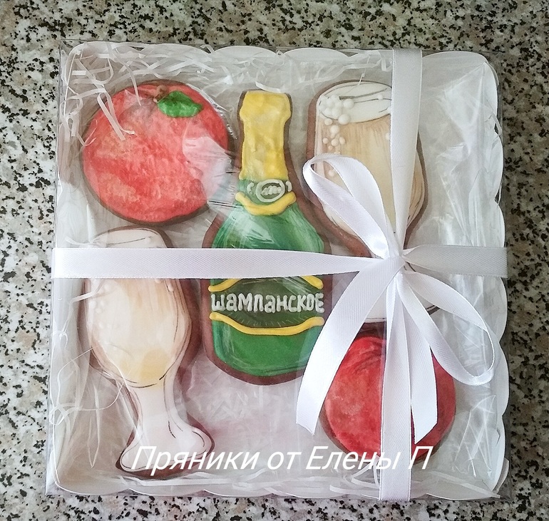 Елена добрый вечер! Нам пожалуйста ваших вкусных пряников 10штук, 5 с собаками и 5 шампанским и фруктами.