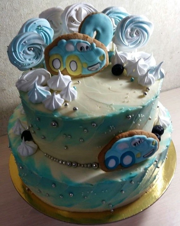 Этот был на заказ, вес 5 кг, низ - Молочная девочка с вишней, верх - шоколадный. Прянички делала первый раз )
