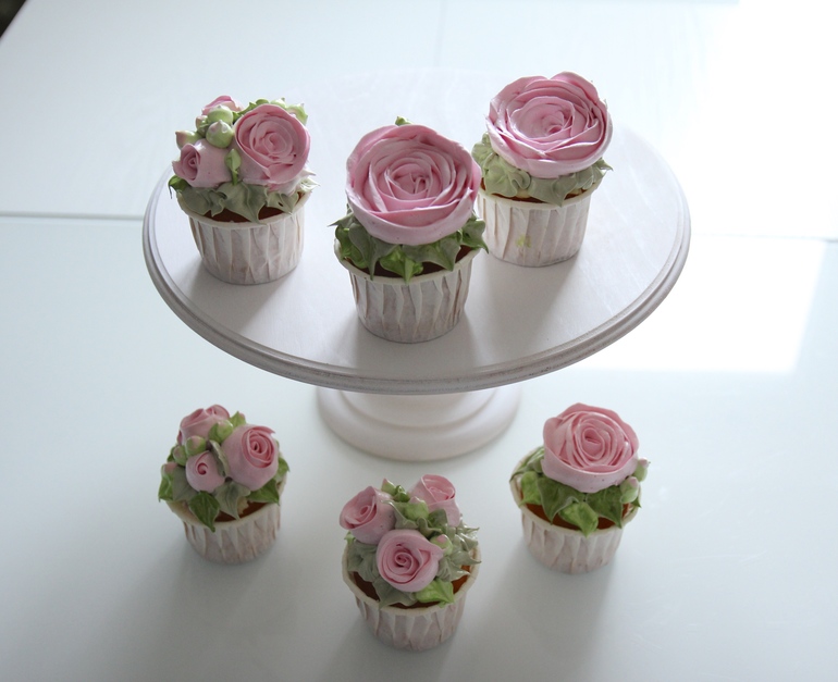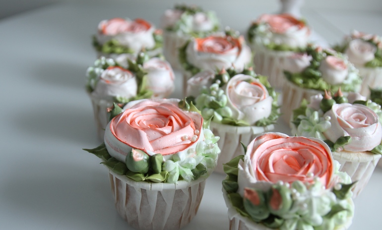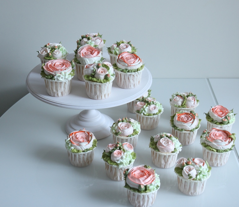 Крем на меренге . А внутри разные начинки . И крем сливки - маскарпоне , и манго маракуйя , и вишня- малина .. а сами капкейки ванильные .