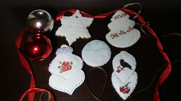 Я только учусь расписывать пряники, набиваю руку в работе с разными глазурями... у Вас очень красивые пряники...как рисуете розы и птиц? красками или глазурью?