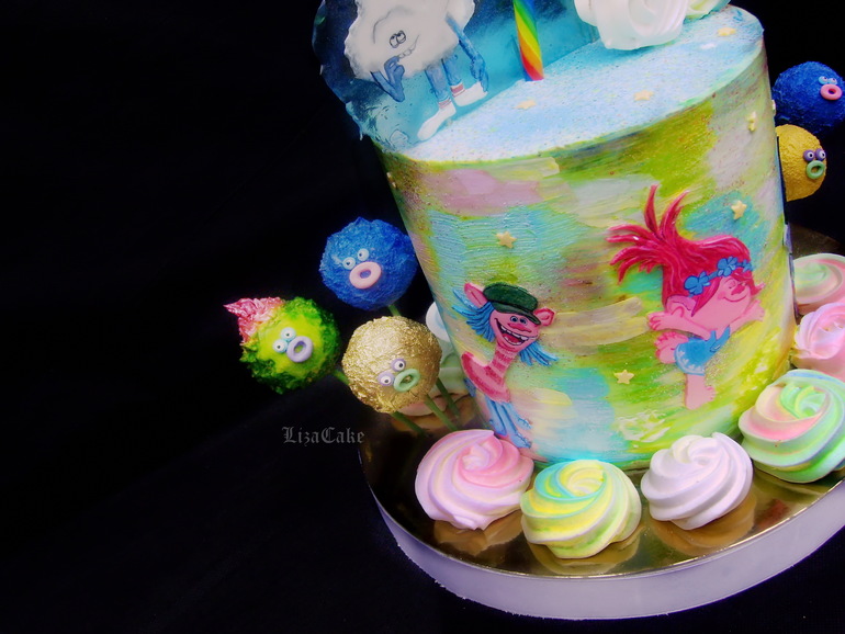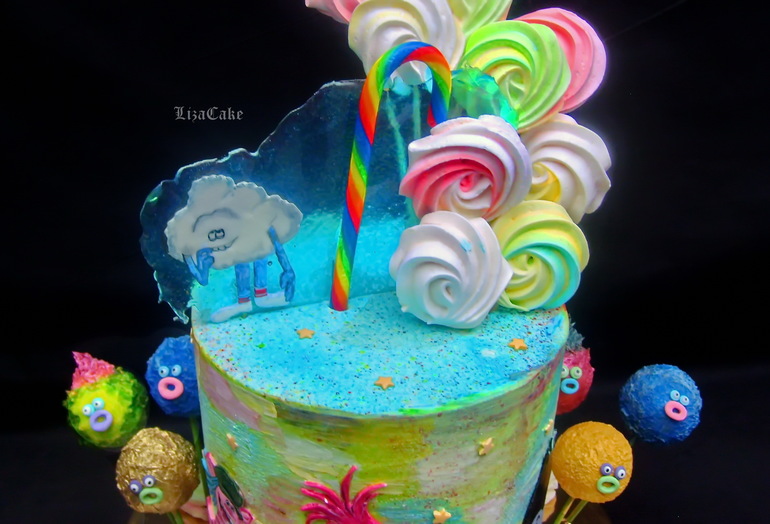 Безешки и кейкпопсы делались спонтанно и в момент сиюминутного помешательства - торт мне показался очень скучным и я решила его "развеселить".. Как известно веселенький торт и я - понятия несовместимые.. поэтому чем сильнее я его "веселила", тем меньше он мне нравился, но дырки .. в общем так и оставила))