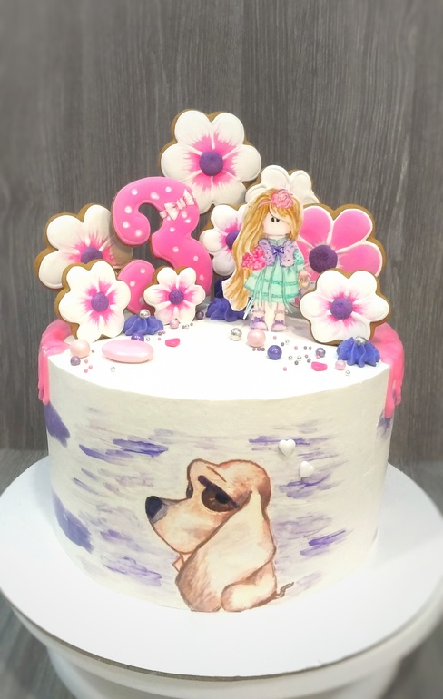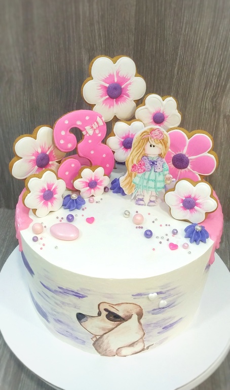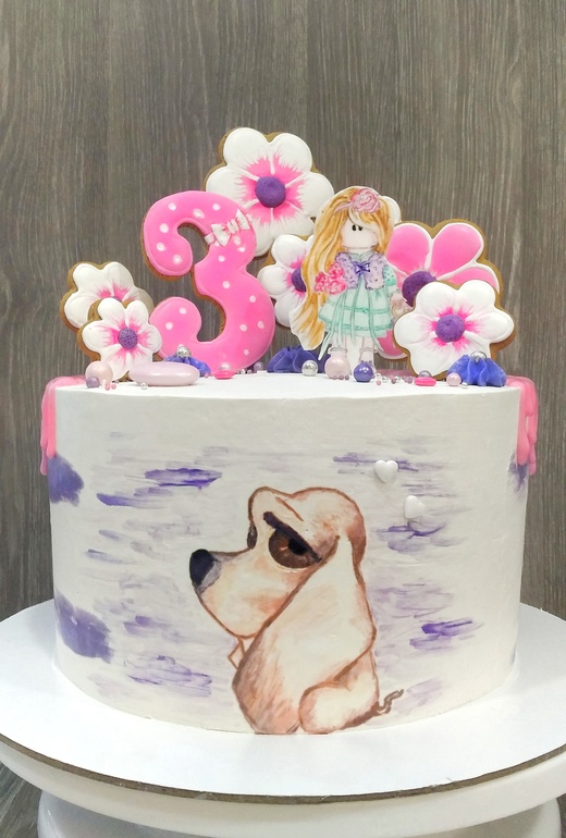 Украшение тортов кремом,шоколадом, фруктамиНаконец-то решилась на прянички)) не без косяков,конечно,но для первого в жизни замеса я была удовлетворена результатом😋собачка и девочка- ручная роспись..