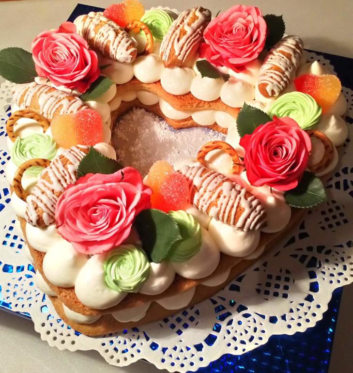 коржи песочные, медовые, миндальные (чаще всего), крем - любой плотный (ганаш на белом или темном шоколаде, чиз с маслом, смесь ганаша и чиза с маслом, просто масляный /но он тяжеловатый/, шарлотт, муслин, иное)