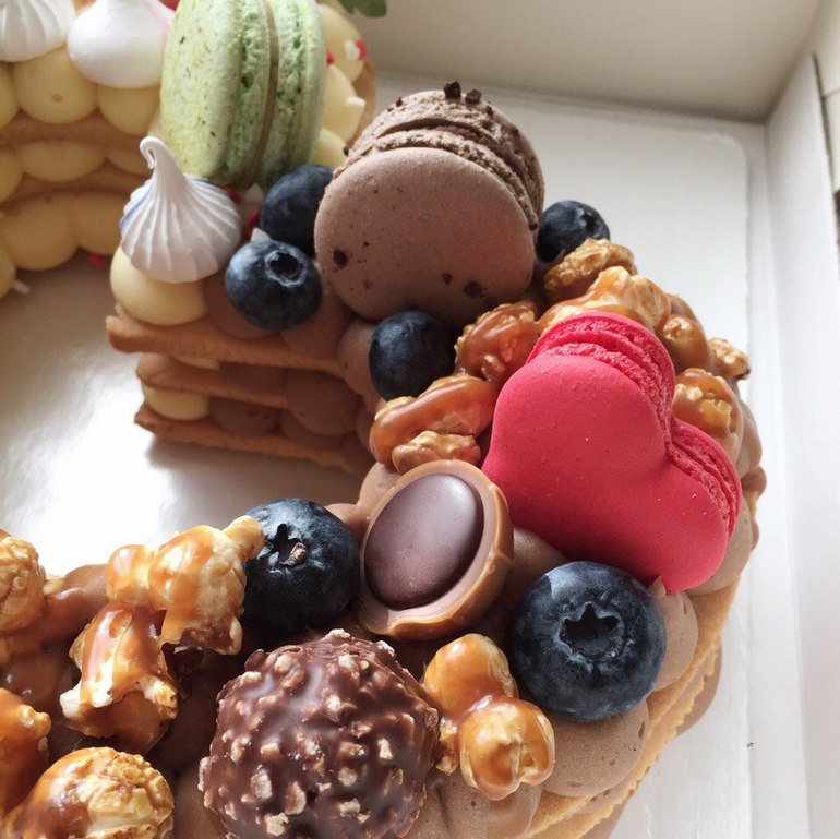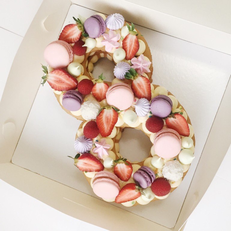 Украшение тортов кремом,шоколадом, фруктамиНу естественно к 8 марта это "восьмерка")