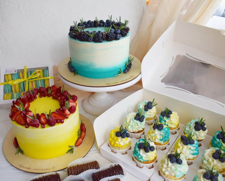 Два тортика с разными начинками весом 3+3,3 кг, 18 десертов Сникерс и 12 ванильных капкейков, 15 пирожных Картошка и макаронс с разными начинками.. все коробки смогли нести три человека)..🤗