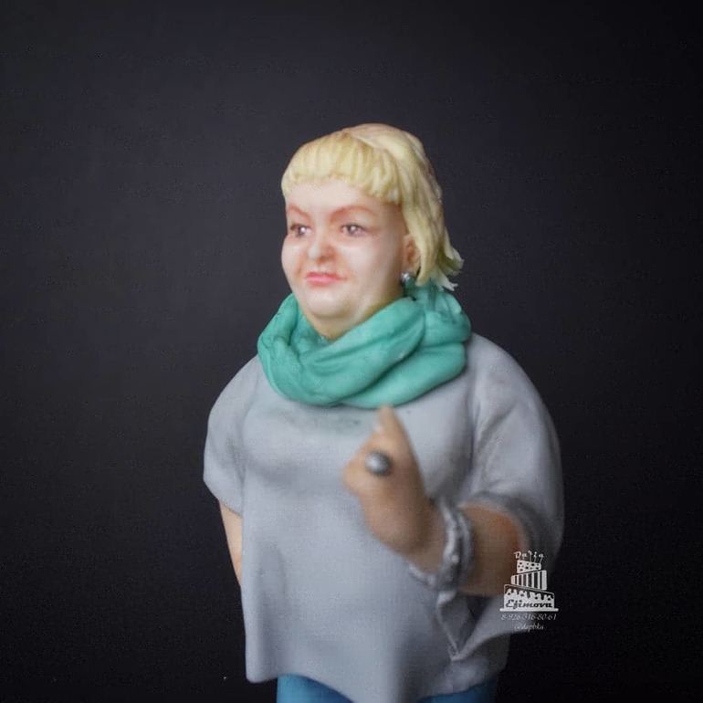Без обид. Похожа - это правда. Но вы ей добавили возраста. Не знаю как, но ваша фигурка выглядит старше, чем женщина на фото.