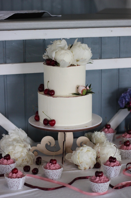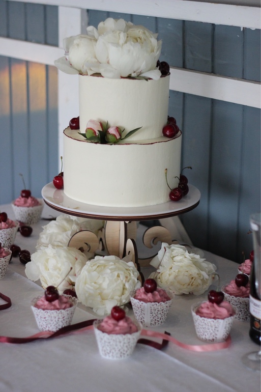 5 кг торт, верхний ярус ванильный, кремчиз, голубика - с определением пола ребенка, которого ждут молодые, нижний фисташка-малина, капкейки "Розовый бархат" с натуральным малиновым кремчизом, украшение живыми пионами и черешней, подкатом разрез с определением пола ребенка, которого ждут молодые и я собственной персоной 😜