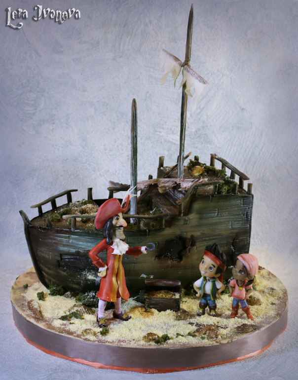 Торты детскиеТорт "Пираты". Сам торт спрятан в заброшенном корабле, внутри шоколадный мусс, шоколадный бисквит. Покрыт домашней мастикой. Фигурки и декор - пластичный шоколад (именно ШОКОЛАД, а не его заменитель - глазурь). Высота Джейка 8,5 см, девочки всего 7,5 см! Крюк 13,5 см. Полностью ручная работа) Прошу под кат...