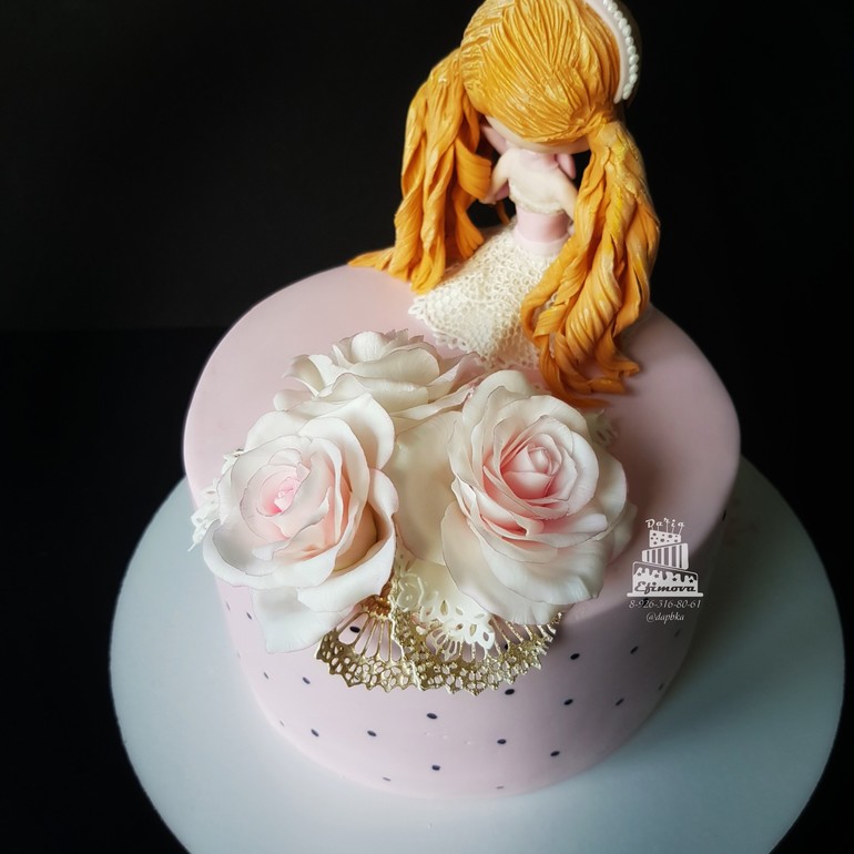 Тортик наимилейший))а я бы розочки вообще не ставила наверх, там куколки достаточно.. я бы их небольшие вниз сбоку с противоположного...но это лишь мое мнение)))