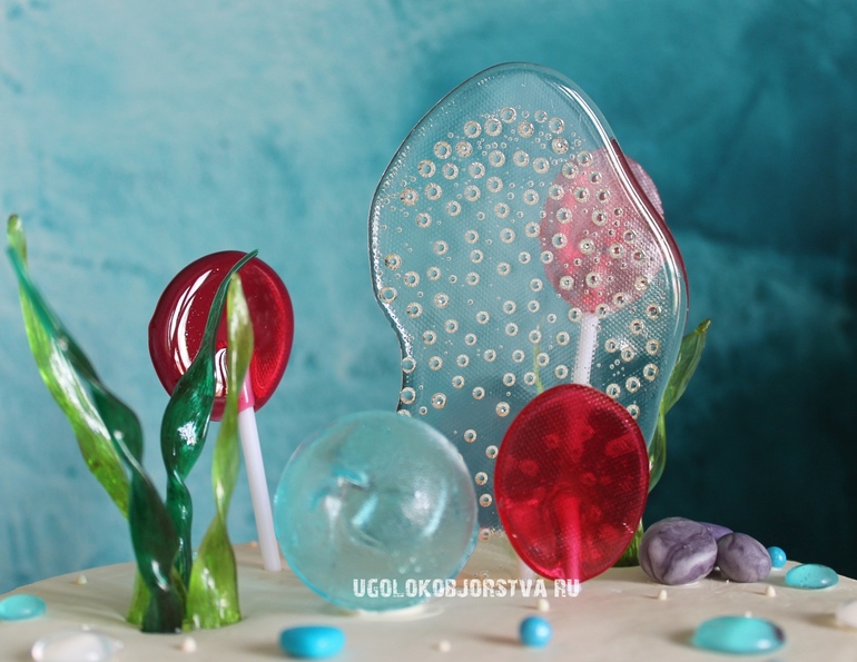О, торт шикарный! А вот эту прозрачную штуковину как вы делали?