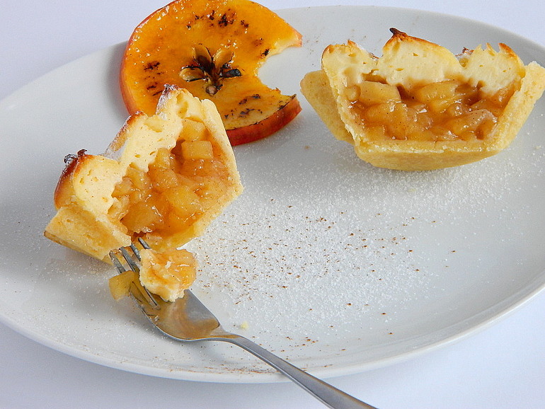 Тарталетки яблочные с шапочкой из заварного крема и заварного теста.